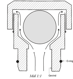 En-vejs ventilen kan i princippet placeres vertikalt alle steder over det filtersatte