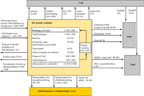 * Heraf eksporteres 1.900-2.900 kg kviksølv pr. år til deponi i udlandet.