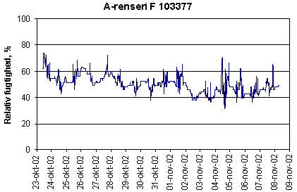 Feltafprøvning af sporgasmetode til brug for måling af transport af forureninger mellem renserier og tilstødende lejligheder Bilag VI:Temperatur og luftfugtighed under feltforsøg Af dette bilag fremgår de registrerede temperatur og fugtighedsforløb i renserierne og lejlighederne gennem de to forsøgsrunder. Forsøgsrunde 1Lokalitet A