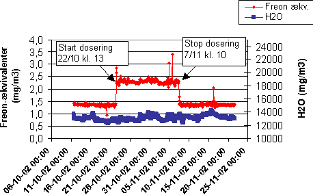 Koncentrationen af freon er målt med B&K 1302 én gang i timen under forsøgene, som