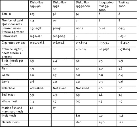 Deutch B. Lifestyle and contaminants in Greenland 1994-1996. Master of Public Health Thesis; Publication No 11, Aarhus University 1999