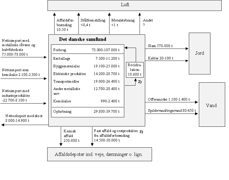 Tabel 5.3 Massebalance for metallisk aluminium og aluminium anvendt i kemikalier; 1994