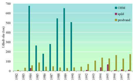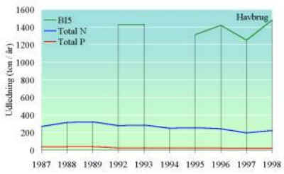 Udledningen i 1998 er opgjort til 5.166 ton kvælstof, 601 ton fosfor og 3.525 ton organisk stof målt som BI5, jf. tabel 3.2.