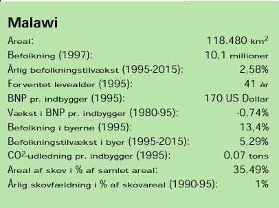 Malawi/Niassa-søens naturressourcer. Indtil videre er der igangsat et projekt i Malawi. I