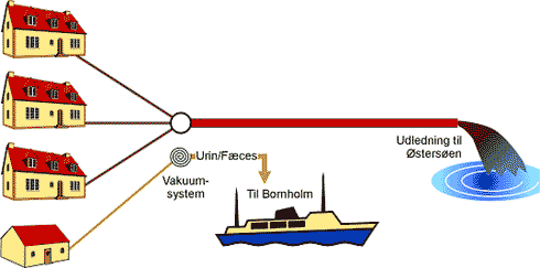Et vakuumsystem anses således for at være et rimeligt teknologivalg for de offentlige toiletter. Urin- og fækalier opsamles i sommermånederne (ca. 60 dage) og sejles til Bornholm hvor det kan tilføres kloaknettet med efterfølgende rensning. Det er oplagt at det opsamlede materiale fra hytterne tilføres et offentligt vakuumsystem.