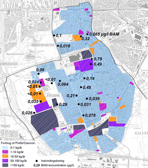 Eksemplerne er taget fra de BAM-forurenede indvindingsoplande til henholdsvis Hvidovre