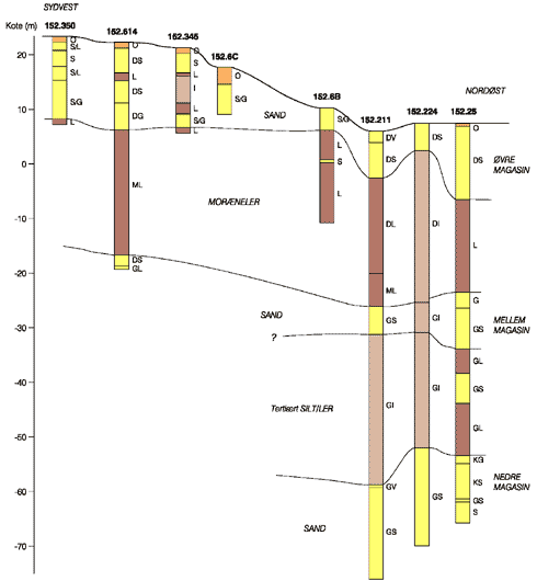 Geologisk profilsnit gennem kildepladsområdet ved Eskærhøjværket.