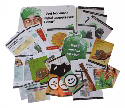 Derudover blev der udarbejdet pressemeddelelser og artikler til medierne. Ad 1 - Forberedelse Her var tale om en introduktion der bestod af brug af internet, annoncer, lokalradio samt telefonservice. Ad 2 - Vejledning Dette var informationspakken der blev udleveret sammen med 2 indendørs affaldsstativer og poser. Pakken bestod af pjece, sorteringsvejledning og monteringsvejledning. Desuden blev der udarbejdet artikel for svagtseende til lydavisen. Ad 3 - Holdningspåvirkning Korte slogans der især indeholder budskabet om knuden, blev anvendt på Århus Kommunale Værkers vognpark.