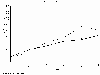 The experiment showed that the crop-weed mixtures had a tendency to over-yield compared to the monocultures. However, this over-yielding in the mixtures was not significantly different from the crop yield in monoculture. This implies that the over-yielding could be explained by random variation in the data. Conclusion In conclusion, this experiment does not reject the assumption, that yield of the mixtures of crop and weeds is likely to be similar to the yield of the crop in monoculture.2.2 Growth of cropsThe individual growth curves are essentially results of a two parameter function, a growth rate and a maximum biomass. This simplification puts restrains on the possible curves, and consequently they are considered to follow the logistic curve, which is symmetric around the point of inflection. Experimentally obtained growth curves for the crops could be found in the literature. However, usable growth curves were not available for the chosen weeds. Growth curves for the latter were therefore based on a subjective estimate. Crops and volunteers have identical growth parameters, likewise for sensitive and resistant weeds of the same species. Winter oilseed rape Dawkins and Almond (1984) conducted an experiment in which they measured the above ground biomass of two winter varieties of oilseed rape over time and the data shown in figure 2.4 are average values of the varieties Elvira and Jet Neuf. The English data show a higher biomass level during the winter time than the model, but otherwise the simulated curve describes the steep part of the growth. Wheat The simulated growth curve for winter wheat (Fig. 2.5) is compared with two experimentally determined growth curves from Denmark. The simulated growth curve overestimates the results from the variety Kraka grown 1986 (Petersen, 1987), but underestimates the results from 1994 (Jørnsgård et al., 1996). |
