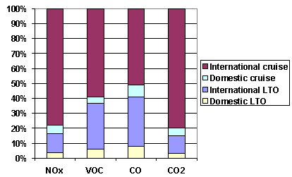 Reversibly the use of the CFM56-7B20/2 engine type would lead to an increase in VOC and CO emissions of over 40 and 200%, respectively. The main concern of the two latter emission components is their impact on the local airport air quality. On the other hand it is the overall experience that the contribution from aircraft is negligible compared to the emissions from road vehicles driven on the airport ground and in neighbouring streets.