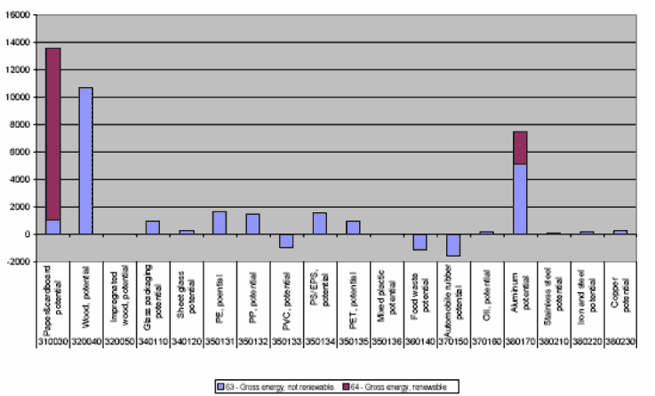 Figure 24. Further potentials for savings in energy consumption, by materials, stated in PE.
