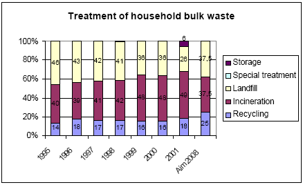 [18] The rise in landfilling and the decline in incineration is partly due to the separation of PVC, impregnated wood, and electrical and electronic equipment.