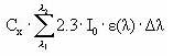 Very often quantum yield is not reported. Instead a measured photolytic half-life of a substance is obtained from experiments with a xenon lamp or other lamps with a specified light intensity (W/m2) (or outdoor experiments at a specified latitude and time of year). The characteristics of the lamp (energy distribution across the wavelength spectrum of the irradiation lamp) should be reported. If the experiments were carried out outdoors, the data on the energy distribution across the wavelength spectrum may be obtained from e.g. Zepp (Environ.Sci.Techn. 12, p. 327, 1978) and Frank (Chemosphere 10, p 985, 1988). The amount of light intensity absorbed by the substance is calculated from (I0 is incident light intensity, L is the optical path length (cm), A is absorbance of the solution = ε • Cx, Cx is the concentration of the substance (mol/L), e is the molar decadic absorption coefficient (L/mol/cm), δλ is appropriate wavelength intervals): Iabs (photons/L/s) = If A(λ )• L is below 0.02 then (1-10-A(λ )• L) » 2.3• A(λ)• L simplifying the above equation into: Iabs (photons/L/s) = The quantum yield (Φ ), which is assumed to be independent of wave-length (which is an approximation) is then calculated from the measured photolytic half-life by: