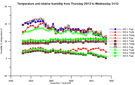 ISO-2 with a mean of 38 °C, ISO-3 with a mean of 28 °C, and ISO-4 with a mean of 32 °C during the first half of the period of measurement and 38 C during the second half. This