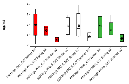 Figure 4.8: Seasonal variation of ΣhighPAH associated with outdoor PM at Jagtvej