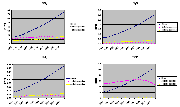 Figure 34 1985-2004 time series of fuel use and emissions for recreational craft