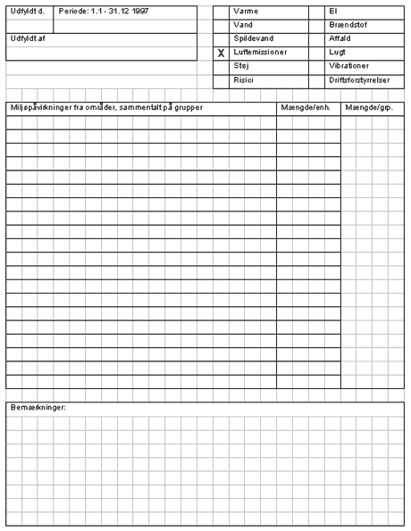 Tomme hovedskemaer for luftemissioner, spildevand og affald UNDERSKEMA, råvarer, hjælpestoffer, luftemission, spildevand, affald