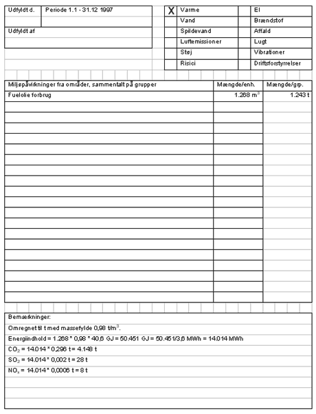 Løsningsforslag De kvalitetssikrede under- og hovedskemaer er vedlagt. Ændringer og tilføjelser er sat med fed kursiv. Det bemærkes, at hovedskemaerne senere vil blive udvidet med miljøpåvirkninger fra andre afdelinger. UNDERSKEMA, råvarer, hjælpestoffer, luftemission, spildevand, affald