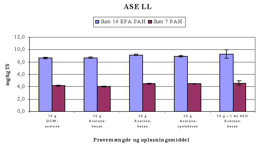 Figur 3.2.3b Sammenligning af ASE-ekstraktionsmetoder for referencejord på lavt niveau
