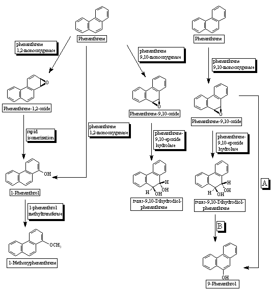 Nedbrydning af Phenanthren (Bakterie nedbrydningsveje 2#3) 1. Marine Cyanobacterium 2. Synechococcus sp. PR-6