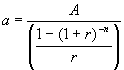 Indsættes n = 5, r = 6% og A = 1000 kr. fås, at a =237,40 kr. En årlige betaling på 237, 40 kr i en periode på 5 år svarer altså til, at betale 1000 kr. på én gang i begyndelsen af perioden, når renten er 6% p.a.