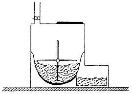4.1.1.2 Skråbundsklosetter I skråbundsklosetter har bunden af kompostbeholderen et fald på 15-30°. Tilførslen sker i den øvre ende. Ideen er, at de faste stoffer skal glide ned af bunden af sig selv, men i praksis er man ofte nødt til at skovle/trække dem ned. Overskudsvæsken føres ned i den nederste del, hvorfra den fordampes. For at fremme fordampningen og for at ilte de faste stoffer er der placeret luftkanaler parallelt med bunden. Figur 4.2