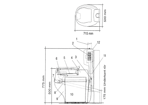 4.1.1.5 Små klosetter Små klosetter består kun af et rum. På grund af små voluminer er det nødvendigt at accelerere både fordampningen og komposteringsprocessen. Alle små klosetter bør derfor forsynes med elektrisk ventilation, opvarmning og mekanisk omrøring. Klosetterne skal tømmes jævnligt. Figur 4.5