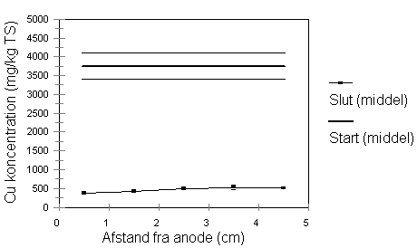 Med hensyn til Cu blev jorden renset fra 3800 mg/kg til et niveau på 500 mg/kg, dvs.