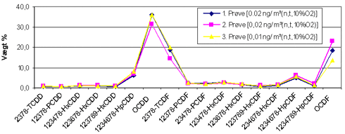Mønstrene viser en overvægt af de højtchlorerede dioxiner og furaner med den
