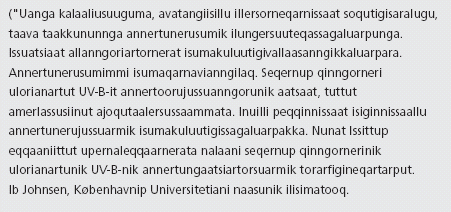 Ib Johnsen Qaanaami issut qaavinut UV-B-it qinngornerinut illersuutissanik