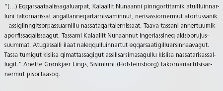 pinngortitamik nungullarsaaneq. "Nunarput isorartoqaaq, kisiannili