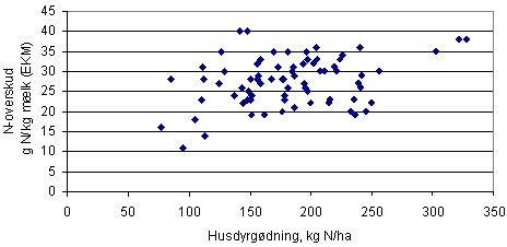 kvælstofoverskuddet per produceret enhed (figur 2), finder vi en meget stor spredning og