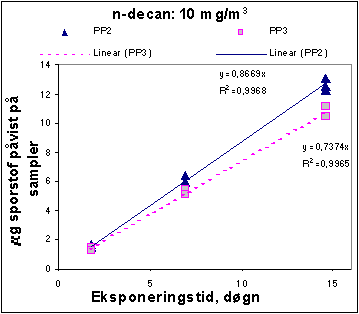 Dette skete ved periodevise målinger af henholdsvis tetrachlorethylen og n-decan med