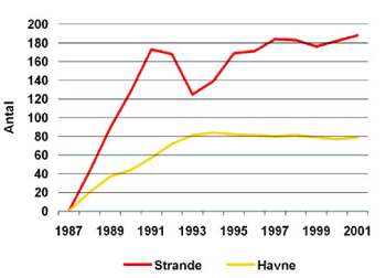 har i de sidste par år været mest markant for strandene, hvorimod havnene har ligget