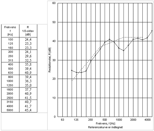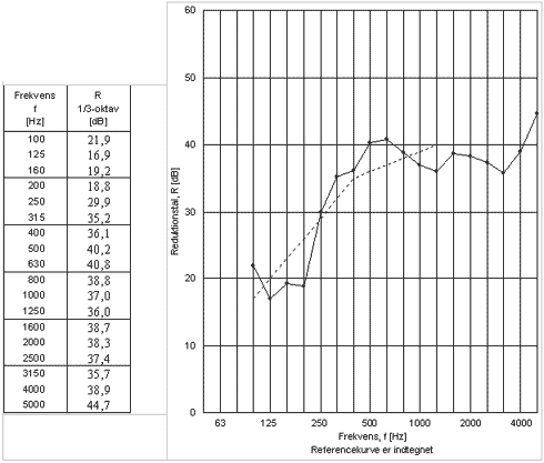 opnået med en klasse 2-metode: DS/EN ISO 140-3:1995 |