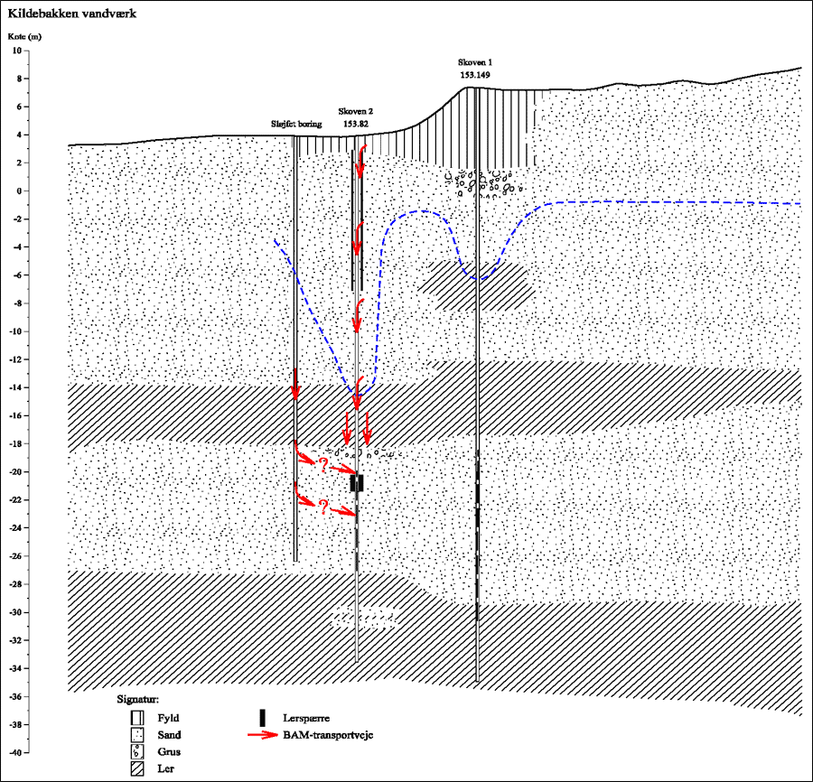 Figur 8.8 Forureningssituation på Kildebakken omkring Skoven1 og Skoven2.