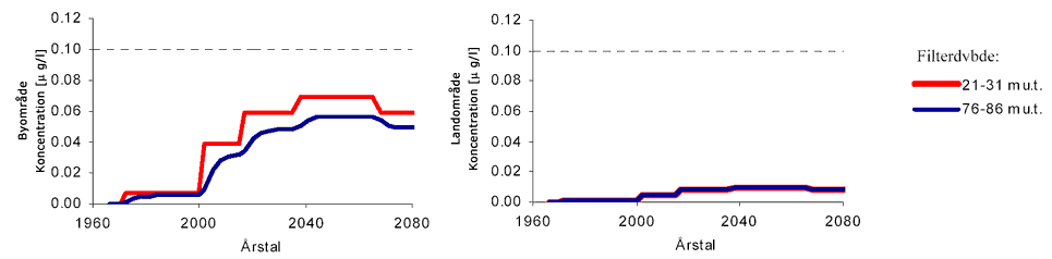 Modelberegnede BAM koncentrationer i en vandindvindingsboring og omkringliggende
