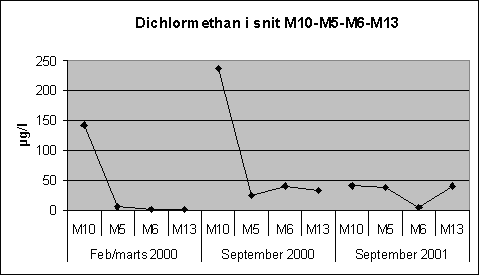 bagkanten af væggen under oprensningskriteriet på 10 µg/l. Koncentrationen af
