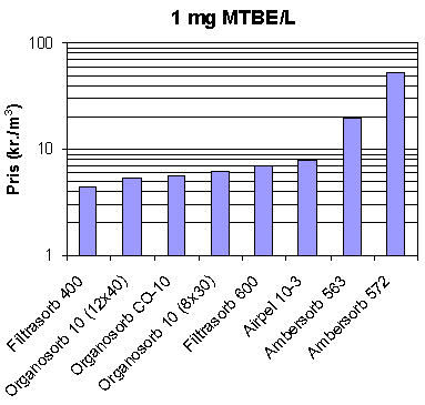 mest fordelagtigt. Prisen for rensning af grundvand, forurenet med 1 mg MTBE/L er således