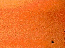 En metode til test af mekanisk rensning (11.3) er ligeledes udviklet og afprøvet på et tilfældigt valgt udstyr og metode. Afrensningen fjernede effektivt den biologiske vækst både på de laboratorieinficerede plader og de naturligt inficerede tagsten vurderet visuelt umiddelbart efter rensning, men der skete synlig skade på materialernes overflade, se figur 11.6. På tagsten nr. 5, 6 og 7 viste aftryksplader "ringe vækst", hvilket vil sige, at der var algeforekomst tilbage efter rensning, som i praksis må antages at kunne videreudvikle sig.