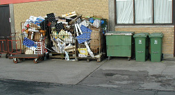 Affald med emballage ved dagligvarebutik
