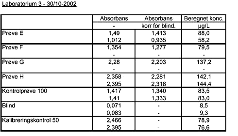 Resultater fra metodeafprøvningen den 30. oktober 2002 KORRIGERET MED KONTROPRØVEN 100