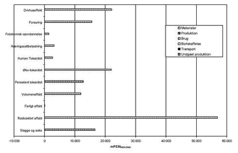 Se billede i fuld størrelse Figur 2 Vægtede miljøeffektpotentialer for TE55 med mekanisk føler (referenceprodukt) opdelt på faser