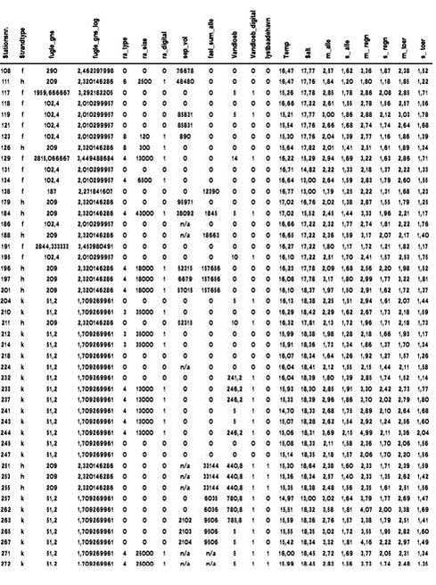 Nedenfor er angivet de data, der er benyttet til udregning af betydningen af de enkelte faktorer i de lineære modeller der er gennemgået i kapitel 6. Første tabel indeholder de værdier som er benyttet i modellerne mens anden tabel giver dokumentation for, hvorledes værdierne til punktkilderne er bestemt.