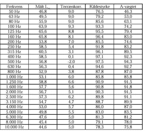 Alle værdier i tabellerne er angivet i dB re. 20 ÊPa.