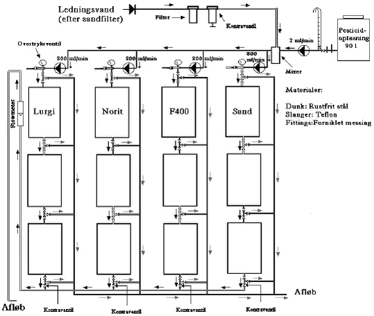 Figur 3.1. Skematisk tegning af bench-scaleanlægget opsat på Hvidovre Vandværk.