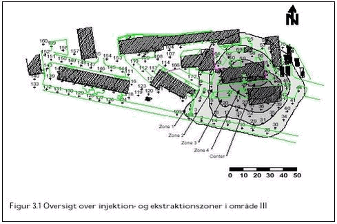 I område III var arealet på godt 5.000 m². Området blev dækket med 74 kombinerede boringer til injektion af damp og ekstraktion af vand/luft/damp. Den helt overordnede plan for driften der blev lagt fra starten er skitseret i tabel 3.1.