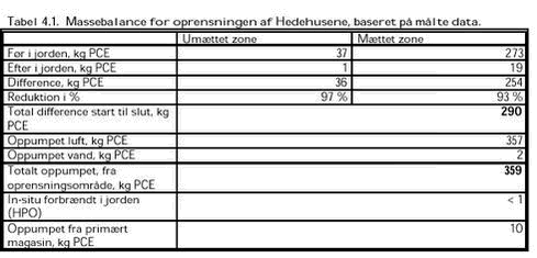 Klik på billedet for at se html-versionen af: ‘‘Tabel 4.1. Massebalance for oprensningen af Hedehusene, baseret på målte data‘‘