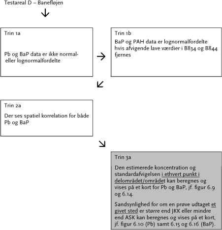 Der kunne analogt angives en sandsynlighed for at en prøve udtaget et vilkårligt sted i testarealet er mindre end afskæringskriteriet for bly. Denne sandsynlighed er over 0,95 i hele testarealet og er ikke afbildet.