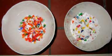 kværnet opstået gitterspild og genanvendt dette i produktionen. Derudover er der suppleret med andet kasseret procesmateriale, fx sodavandskapsler.